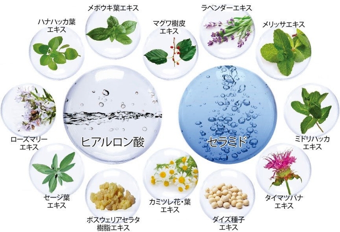 人体にも含まれる成分と各種植物成分でできているため、安心してお使いいただけます。また、お客様の肌への負担を考え、アルコールやシリコン、パラベンは不使用です。