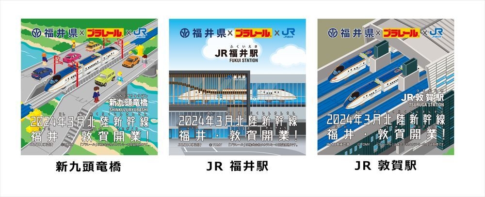新九頭竜橋・JR 福井駅・JR 敦賀駅をプラレールで表現した3種のオリジナルステッカーをプレゼント!