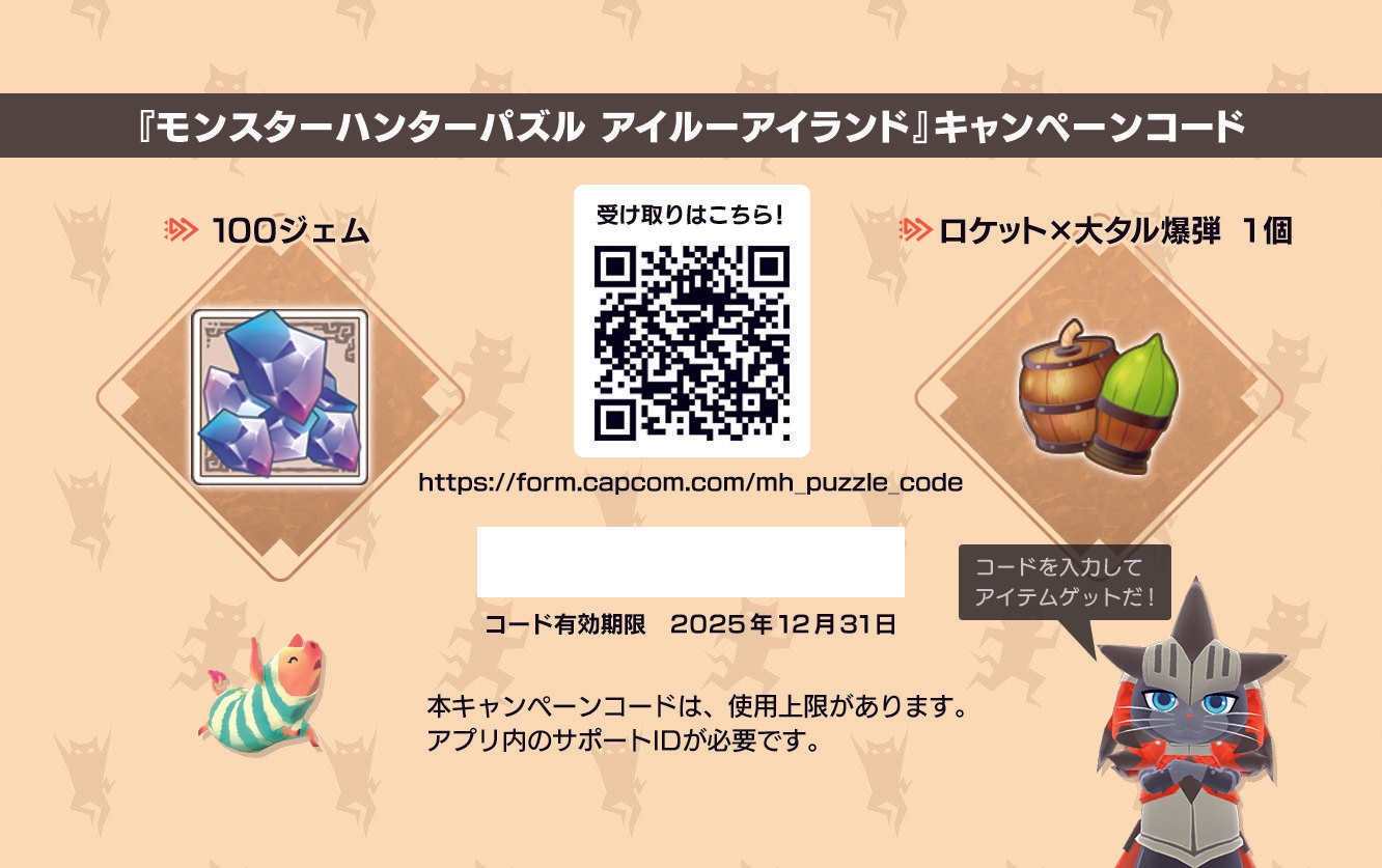 ■『モンスターハンター・ザ・フィールド』×「モンスターハンターパズル アイルーアイランド」 タイアップキャンペーン 概要