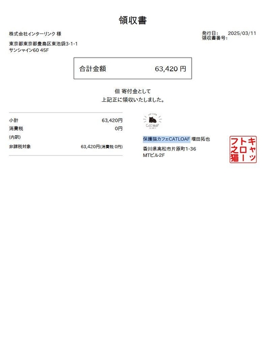 2025年8月に30周年を迎える、インターネットサービスプロバイダーの株式会社インターリンク(東京都豊島区、代表取締役:横山 正、以下 インターリンク)は、社会貢献活動の一環として、保護猫カフェ「CATLOAF」(キャットローフ)(※)へ63,420円を寄付したことをご報告いたします。