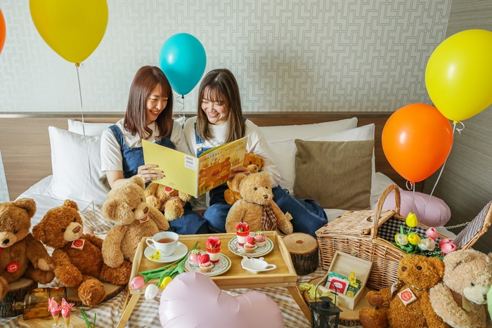 まるでピクニックを楽しんでいるかのような可愛いテディベアがお出迎え!世界3大テディベア「ハーマンテディ」とコラボレーションした名古屋初の宿泊プラン。
