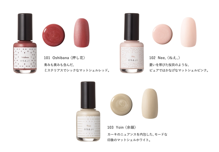 OSAJI(オサジ)メイクコレクションから、「ネイルカラー限定3色、新色4色、マットトップコート、限定フェイスカラーパレット」が登場。2020年11月13日(金)より発売開始