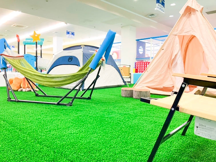 テントやハンモックなどの本格的なキャンプアイテムを使ったごっこ遊びを楽しんだり、アウトドアチェアに座ってゆったりキャンプ気分を満喫したり、親子で様々な過ごし方をお楽しみいただけます。