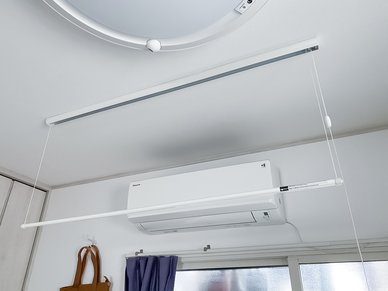 すぐに竿を上げ下げできる簡単さと収納した時に天井からの圧迫感もなく、とても使いやすくて大満足しています。