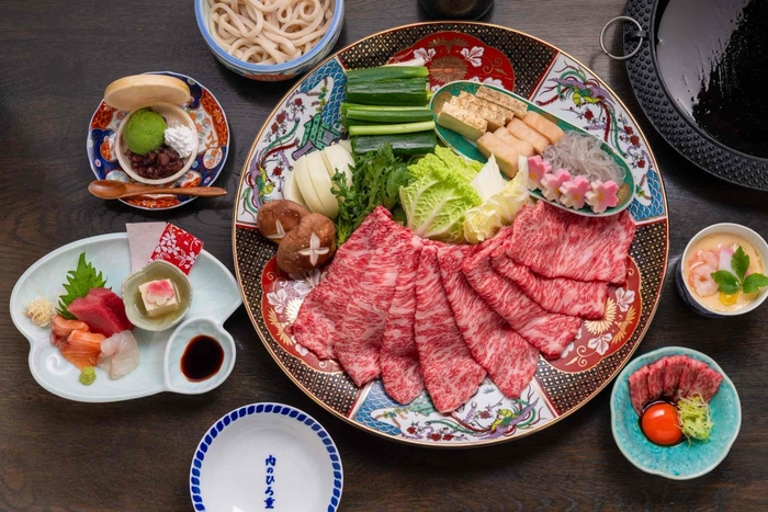そんな京都に残る貴重な重要文化財を改修した店舗で「京都 肉のひろ重」が提供するのは、近江牛を使用した「すき焼き」と「しゃぶしゃぶ」のコースメニューです。