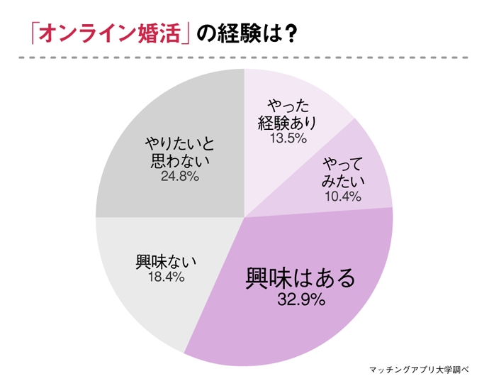 57%の独身男女が、オンライン婚活「経験あり」または「興味あり」