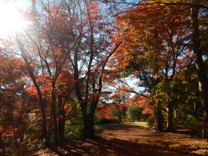 12月上旬ごろは紅葉がピークになり、カエデなどがきれいに色づきます。