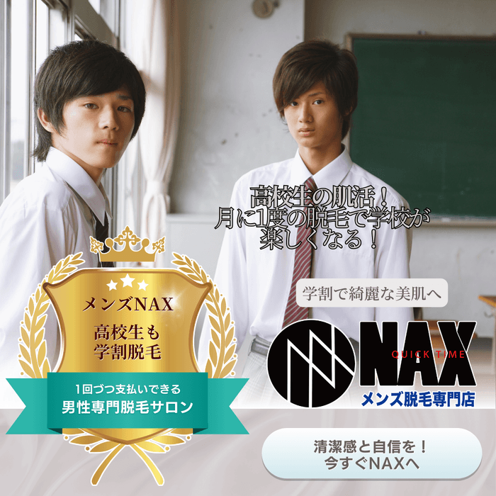 メンズ脱毛専門店NAXでは、学生の方でも通いやすい安心の料金設定。プロの施術だから、肌への負担も少なく、はじめての方でも安心です。