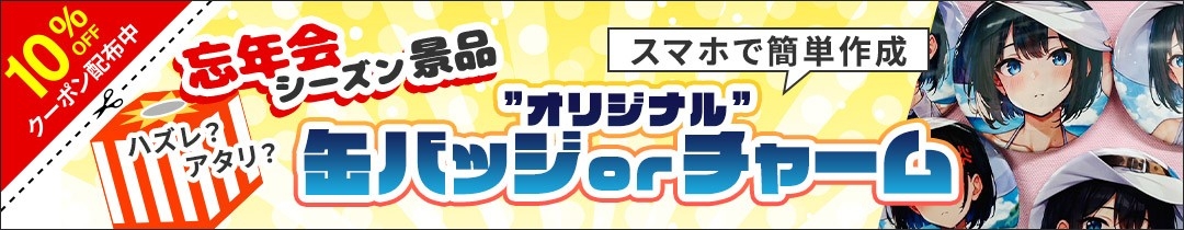 忘年会需要に向け、写真で作るオリジナル景品(チャーム・缶バッジ・ミラー)を1週間限定で特別価格で提供開始