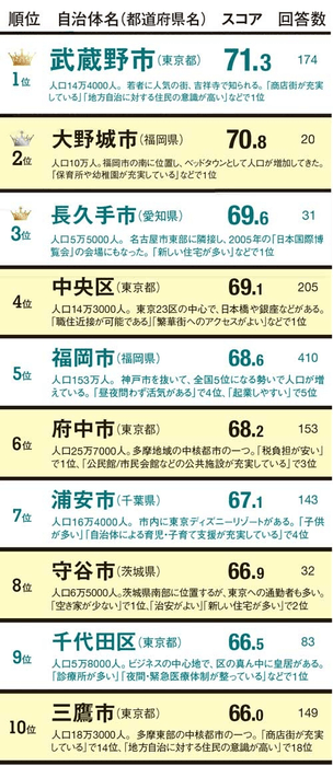 日経ビジネスと日経BP総合研究所が働く世代2万人を対象にした調査から、「活力のある都市ランキング」が作成されました。これによると上位10位の内、7つが都市部の一都三県に集中していることがわかります。