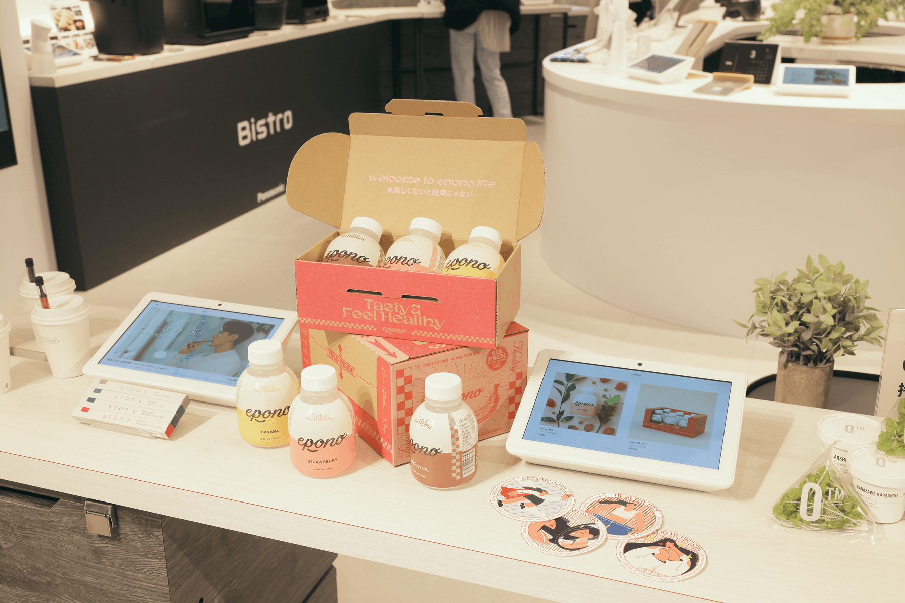 期間中は、カフェスペースを併設したb8ta Tokyo - Shibuyaの特長を生かし、その場でeponoを試食できるほか、好きなフレーバーを選んで購入することも可能です。