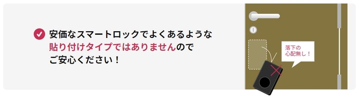 ・物理鍵ではないので入居者に鍵を紛失されたり、複製されて第三者に利用されるリスクがありません。