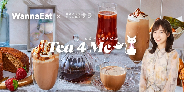 このたび、『WannaEat』の新たなラインナップとして、コスメ関連動画を中心にYouTubeやSNSで支持を得ている美容系インフルエンサー『コスメヲタちゃんねるサラ』と『WannaEat』がコラボレーションした新フードブランド【お家でご褒美時間 Tea 4 Me】を8月23日(水)より順次販売開始します。特設サイト(URL:https://tea4me-sara.com)からデリバリーサービスや販売店舗をご確認いただけます。