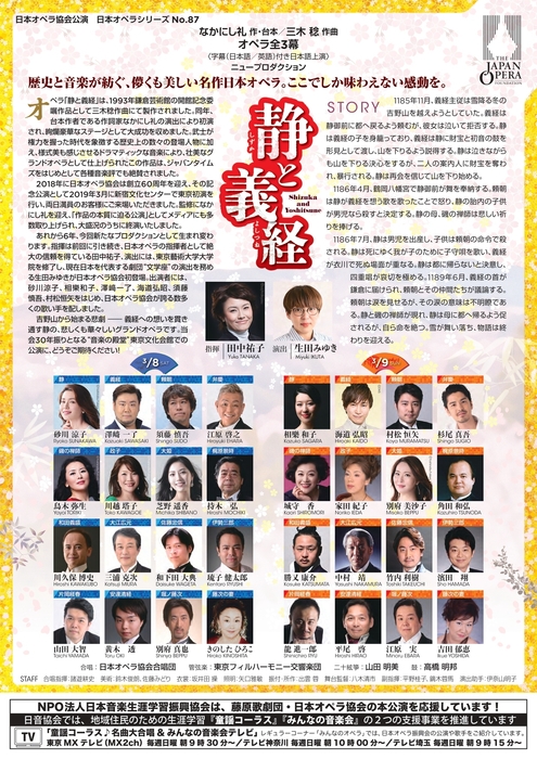 公益財団法人日本オペラ振興会は、2025年3月8日(土)・9日(日)、東京文化会館 大ホールにてグランドオペラ「静と義経」を上演いたします。
