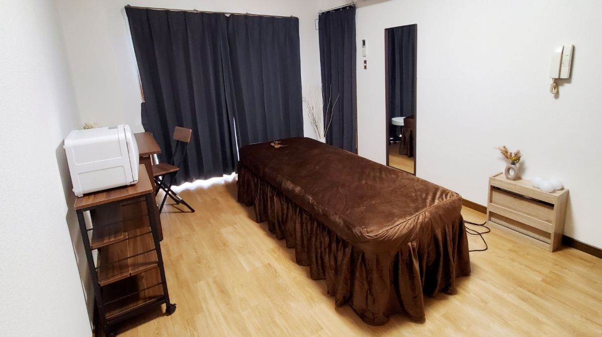 京都から徒歩3分という便利な立地にありながら、1時間1350円+税で利用できます。また、九条駅も徒歩圏内。電動ベッド・ヒートマット・タオルウォーマーなど設備も充実しています。