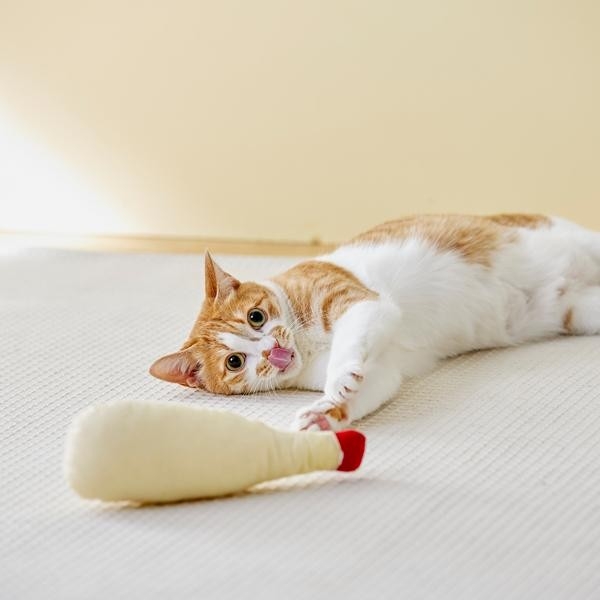 国産猫用おもちゃ「けりマヨ」と合わせれば、愛猫がお好み焼きにマヨをかける姿に