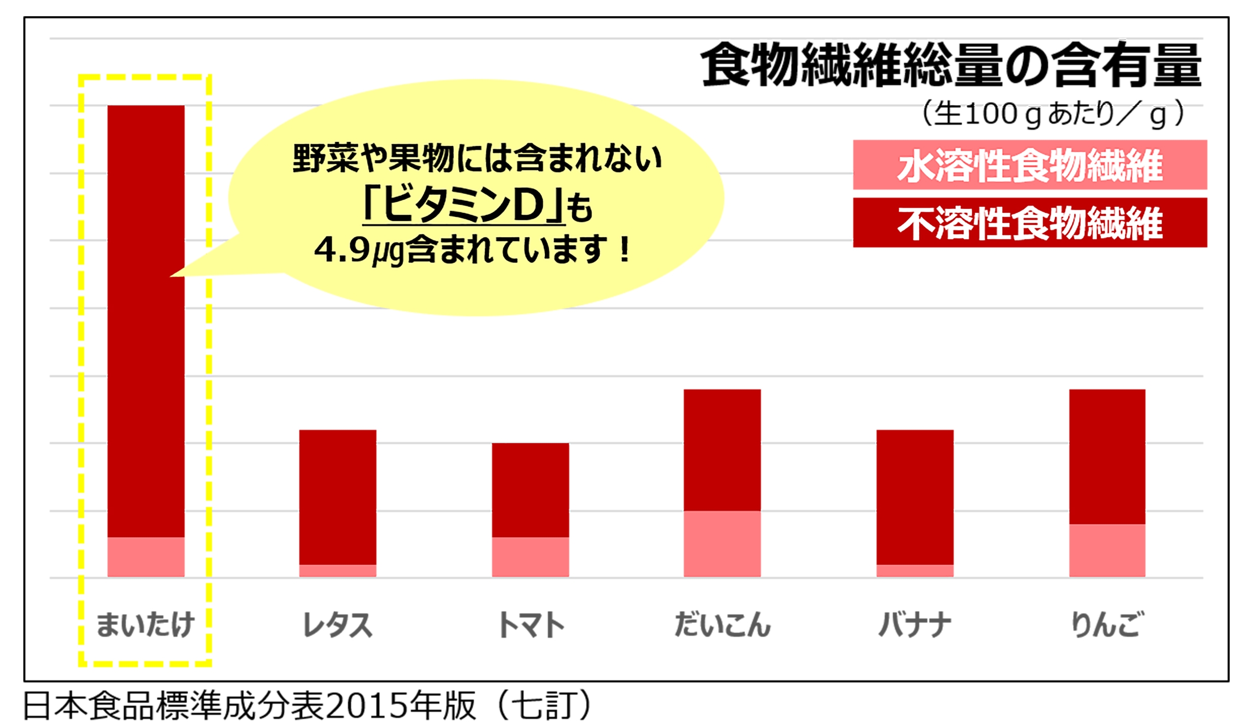 特にまいたけは、食物繊維が豊富なのはもちろん、骨の生成や風邪予防、アレルギーの抑制効果など、子どもの成長と健康に欠かせないビタミンDも豊富に含まれています。」