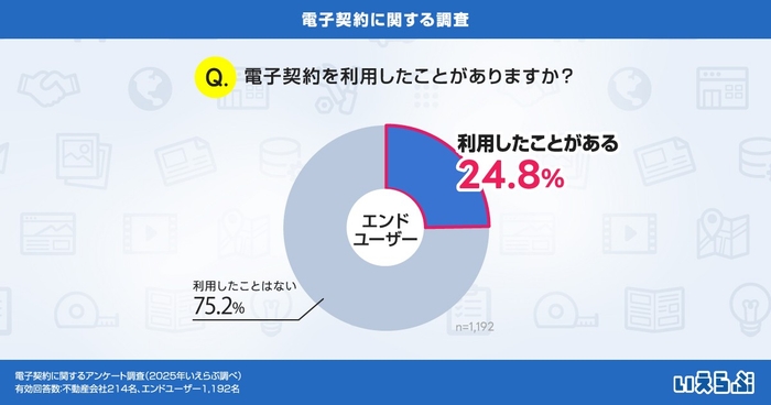エンドユーザーに「電子契約を利用したことがありますか?」と質問したところ、「利用したことがある」という回答は24.8%、「利用したことがない」という回答は75.2%という結果となりました。