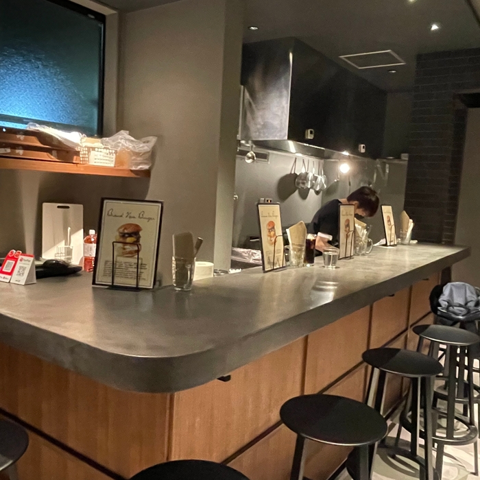 肉好きの間での話題は店主の「肉磨き」。ブロックで仕入れたミスジ肉を丁寧にハンドチョップ、余計な油やスジを取り除いて肉肉しいパティの食感を実現しています。ピカピカのキッチンで頂くハンドチョップしたての新鮮バーガーは格別です。