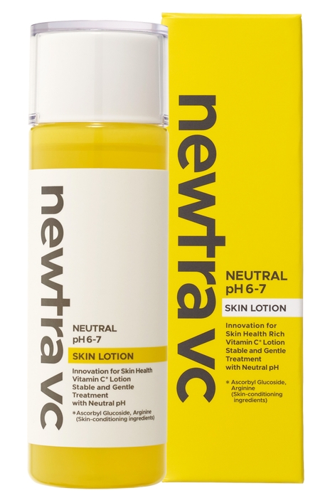 「newtra vc スキンローション」は、安定型中性ビタミンC誘導体MIRAVC(R)を配合し、敏感肌の方もお使いいただける低刺激の化粧水です。ハリ、キメ、つやなどの気になる悩みに全方位にアプローチします。