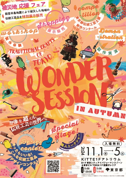 東京都産業労働局は、『Traditional crafts of Tokyo WONDER SESSION in AUTUMN -想像を超える、伝統工芸の世界へ。- 』と題し、東京都伝統工芸品のPRイベントをKITTE丸の内にて、令和6年11月1日(金)~5日(火)に開催いたします。