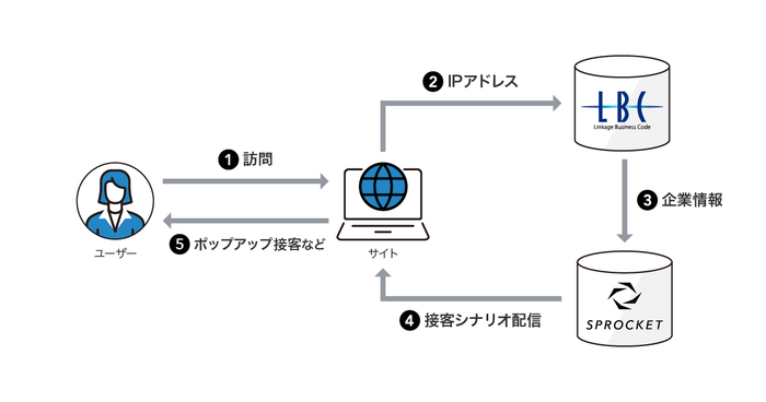 今回「Sprocket」は「LBC」と連携することでサイト来訪ユーザーの企業情報を用いた接客シナリオの出し分けが行えるようになります。