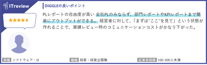 具体的には、「DIGGLE」のご利用企業様からは、以下のようなレビューをいただいています。(一部抜粋)