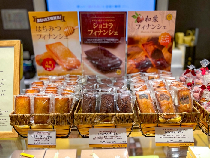 毎朝築地の厨房から直送されるカットケーキや、品川駅で10年以上のロングセラー「はちみつフィナンシェ」もラインナップ。