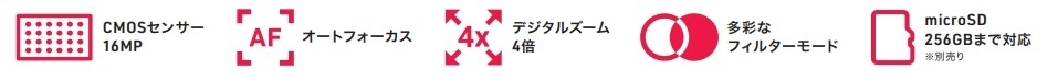 microSDは最大256GBまで対応しているため、撮影した写真や動画を十分に保存できます。