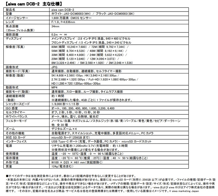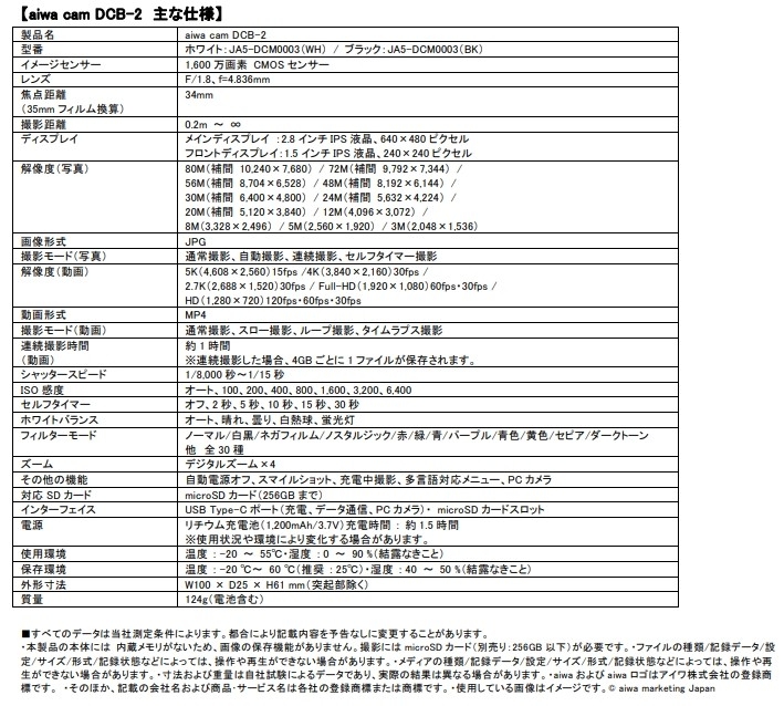テクミラホールディングスの子会社であるアイワマーケティングジャパン株式会社(本社:東京都千代田区、代表取締役社長:藤岡 淳一、以下 アイワマーケティングジャパン)は、aiwaの新製品として、全30種類のフィルター機能を搭載し、トレンドのレトロな質感に加え、セルフィ―も簡単に楽しめる軽量124gのコンパクトデジタルカメラ【aiwa cam DCB-2】(以下 本製品)を、aiwaダイレクトサイトおよび各家電量販店、ネットショッピングサイトにて順次販売開始いたします。