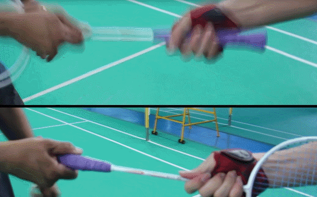 素手では簡単にすっぽ抜けてしまうバトミントンラケットのグリップも、【KURIM H-FIT】を使えばしっかり握れて相手に力負けしません。