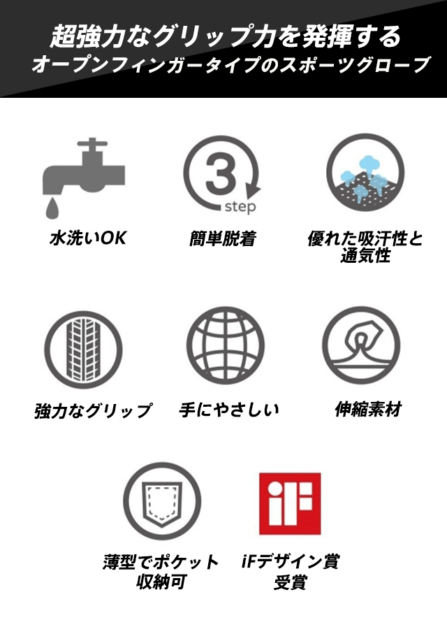 【KURIM H-FIT】は超強力なグリップ力を発揮するオープンフィンガータイプのスポーツグローブです。