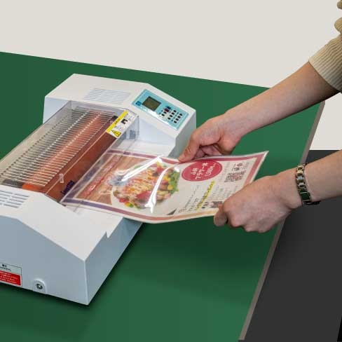お客様でデータ、原稿をご用意いただき、店内にある機械を使って作成をしていただきます。
