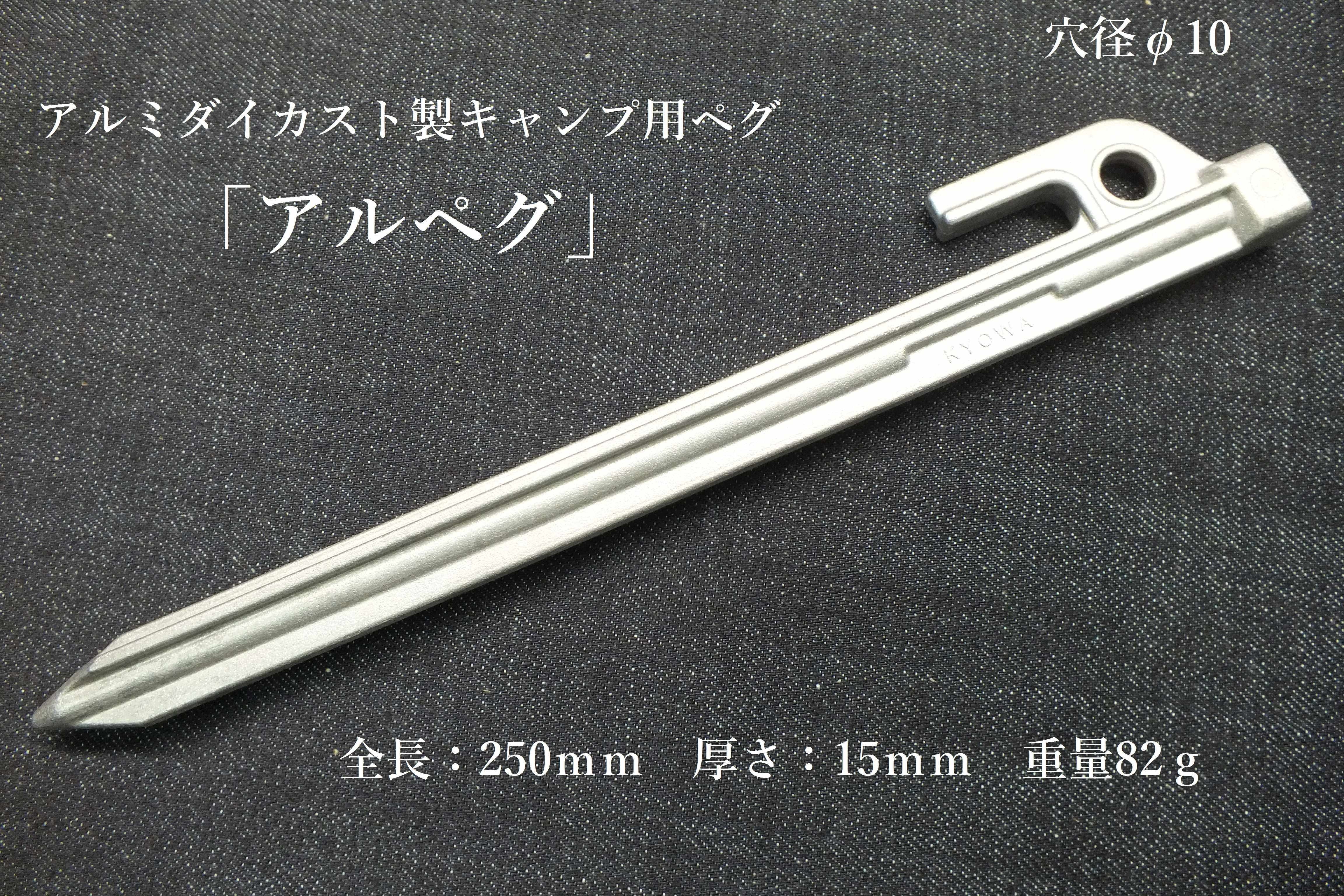 「アルペグ」は従来のペグの機能をそのままに、軽量化を実現したアルミダイカスト製キャンプ用ペグです。