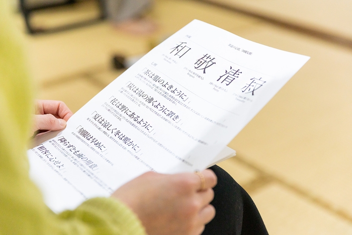 ・後半部分では茶道の精神である、「和敬清寂」などの「四規七則」を読み解き、日常やビジネスシーンでどう活かせるのかを話をしていきます。