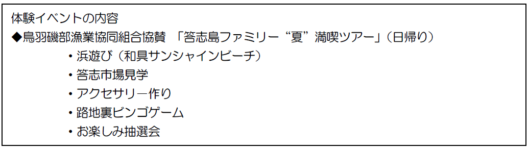 鳥羽磯部漁業協同組合協賛 「 答志島ファミリー“夏”満喫ツアー 」