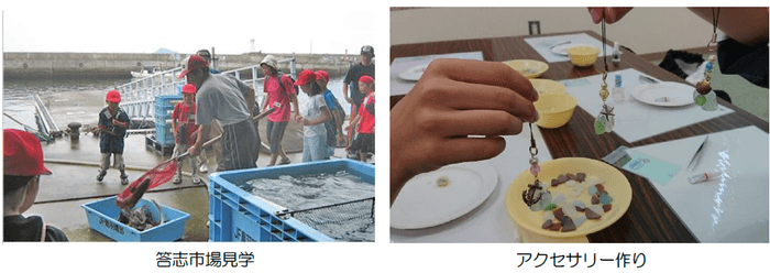本ツアーは、「遊び」× 「学び」×「観光」をテーマとし、鳥羽市離島の「答志島」で楽しく遊ぶ「浜遊び」や、食への興味関心を高め、食の大切さ楽しさを実感できる「市場見学」、浜辺に漂着したガラス(シーグラス)を使って自分だけのオリジナル作品が作れる「アクセサリー作り」など地域の資源を活用したさまざまな体験ができます。