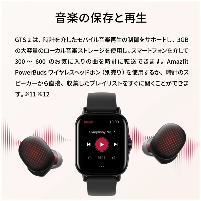 デザイン性と機能性を兼ね備えた「GTS 2」が登場。滑らかな3Dカーブのベゼルレスデザインで、シンプルなのに存在感があります。健康やフィットネスのモニタリングだけではなく、音楽の保存と再生も可能でアマゾンアレクサビルトイン!多機能なスマートウォッチです。