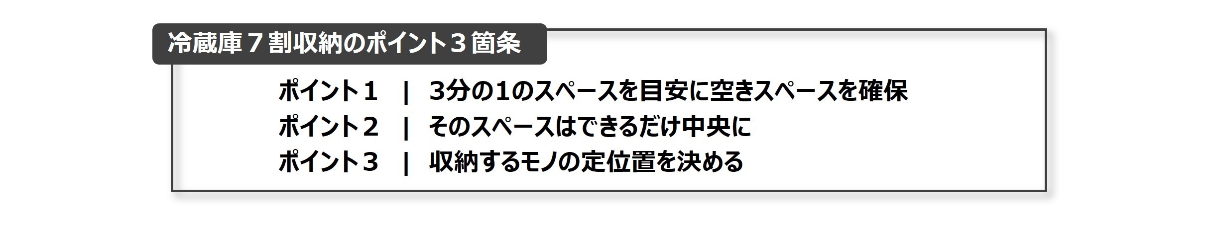 ぜひ7割収納を意識して、冷蔵庫の見直しをしてみて下さい。