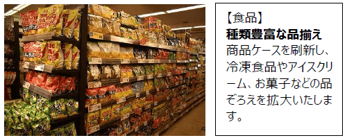 幅広い年齢層のお客様のご要望にお応えできるよう売り場を刷新し、品ぞろえを拡充いたします。また、セミセルフレジを新たに導入することでレジの待ち時間を削減し、利便性を高めます。