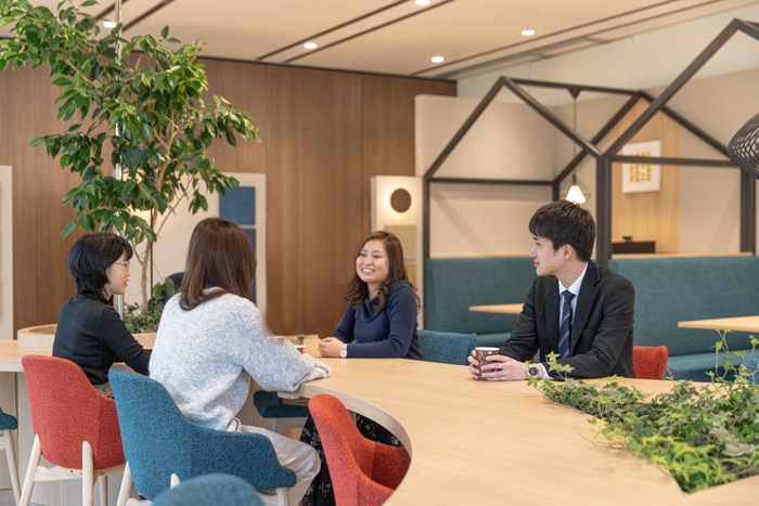 多様な働き方を促進するため、オフィス内にCafeを整備しました。