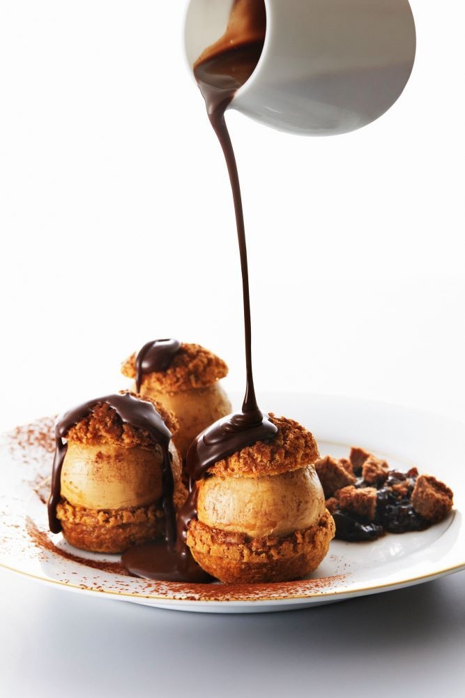 ルノートルを代表するケーキ「オペラ」をプロフィットロールのデセールに仕立てました。
