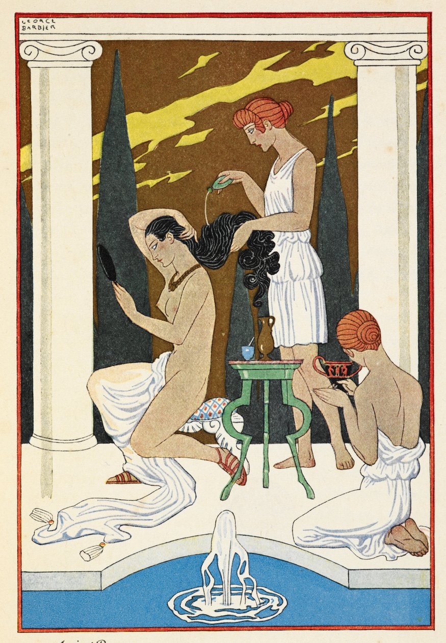 古代の絵画には、貴人の髪を奴隷が扱ったり、マッサージする風景が描かれています。時にはブナの灰、豆粉、粘土、ソーダ、温泉水などで“古代のヘッドスパ”は行われていたようです。