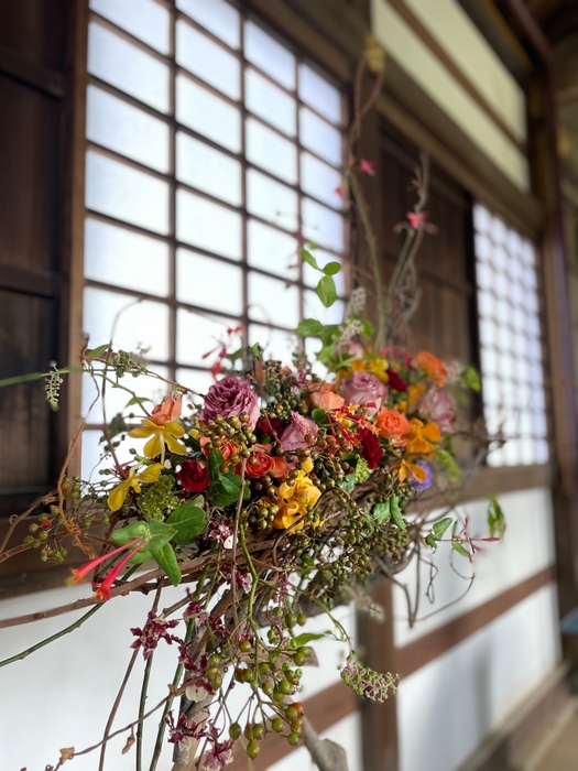 法堂・仏殿・屋外ではフラワーアーティスト「小西拓(こにし たく)」さんによる作品展示を行います。