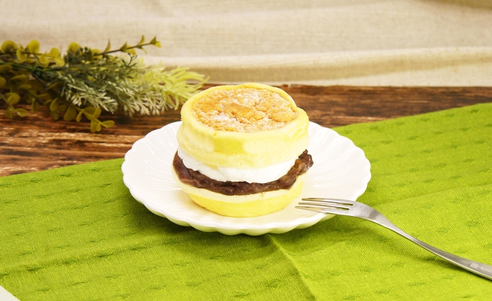どら焼きの皮の代わりに、ふわっとしっとりなスフレで挟みました。