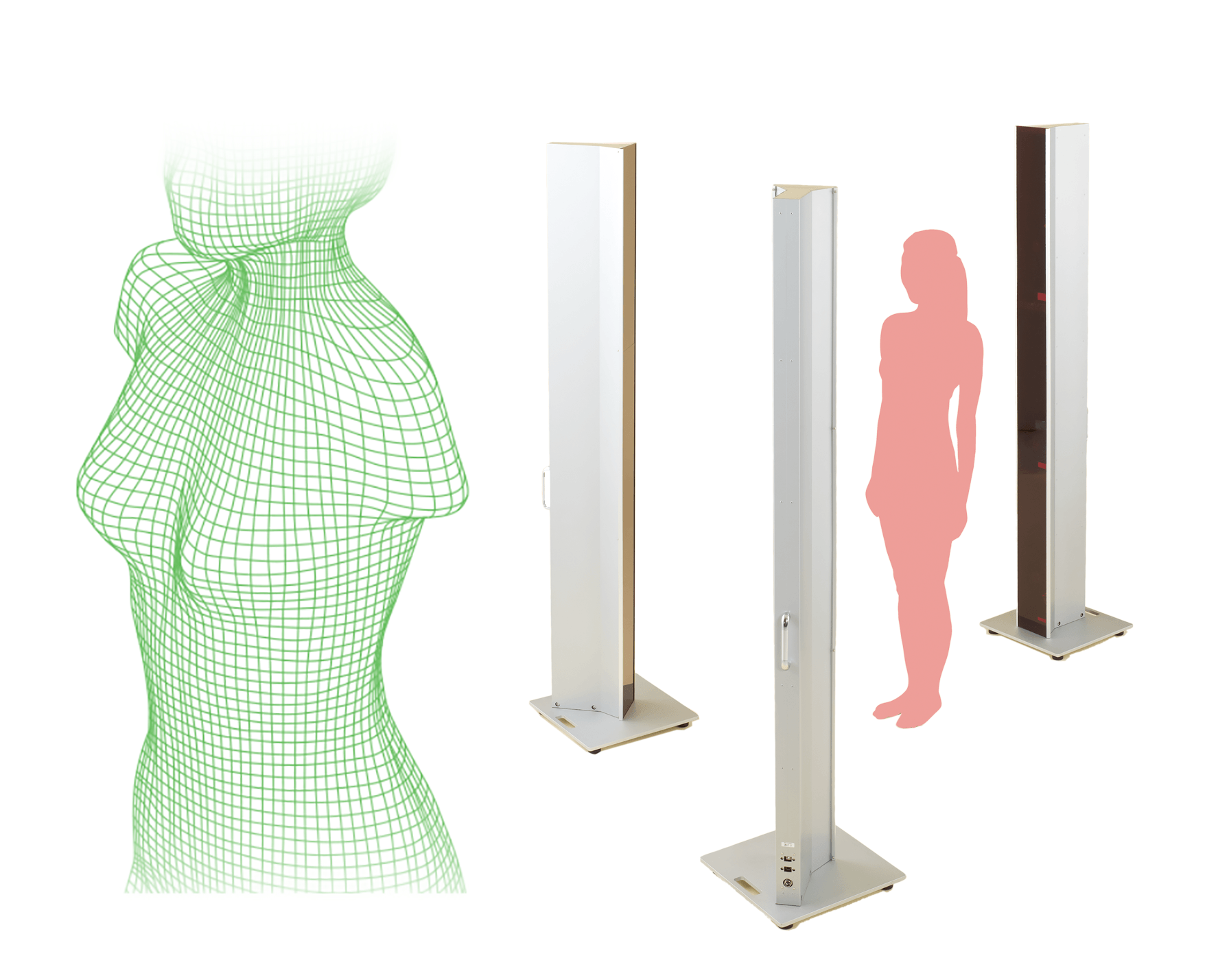 3Dボディスキャナーとは、わずか2.4秒で全身を立体的に計測することができるマシーンです。普段見ることのできない背中やお尻など、360度すべての方向から3Dで確認することができ、客観的に自分の体型を把握できます。さらに理想のプロポーションやプロポーションを崩す原因の一つである、カラダの歪みもご確認いただけます。