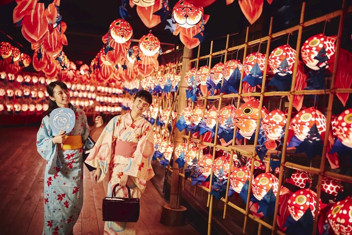 青森には、夏祭りの時期になると街中で飾られる「金魚ねぷた」という灯篭があります。これは昔、津軽藩で藩士のみが飼うことができた津軽錦(つがるにしき)という金魚に、人々が憧れて作ったものが由来と言われ(*2)、青森の夏の象徴として、現在に至るまで愛されています。青森屋は、金魚ねぷたから着想を得て、夏祭りの雰囲気に胸が高鳴り、暑い夏に涼を感じられるイベントを考案しました。
