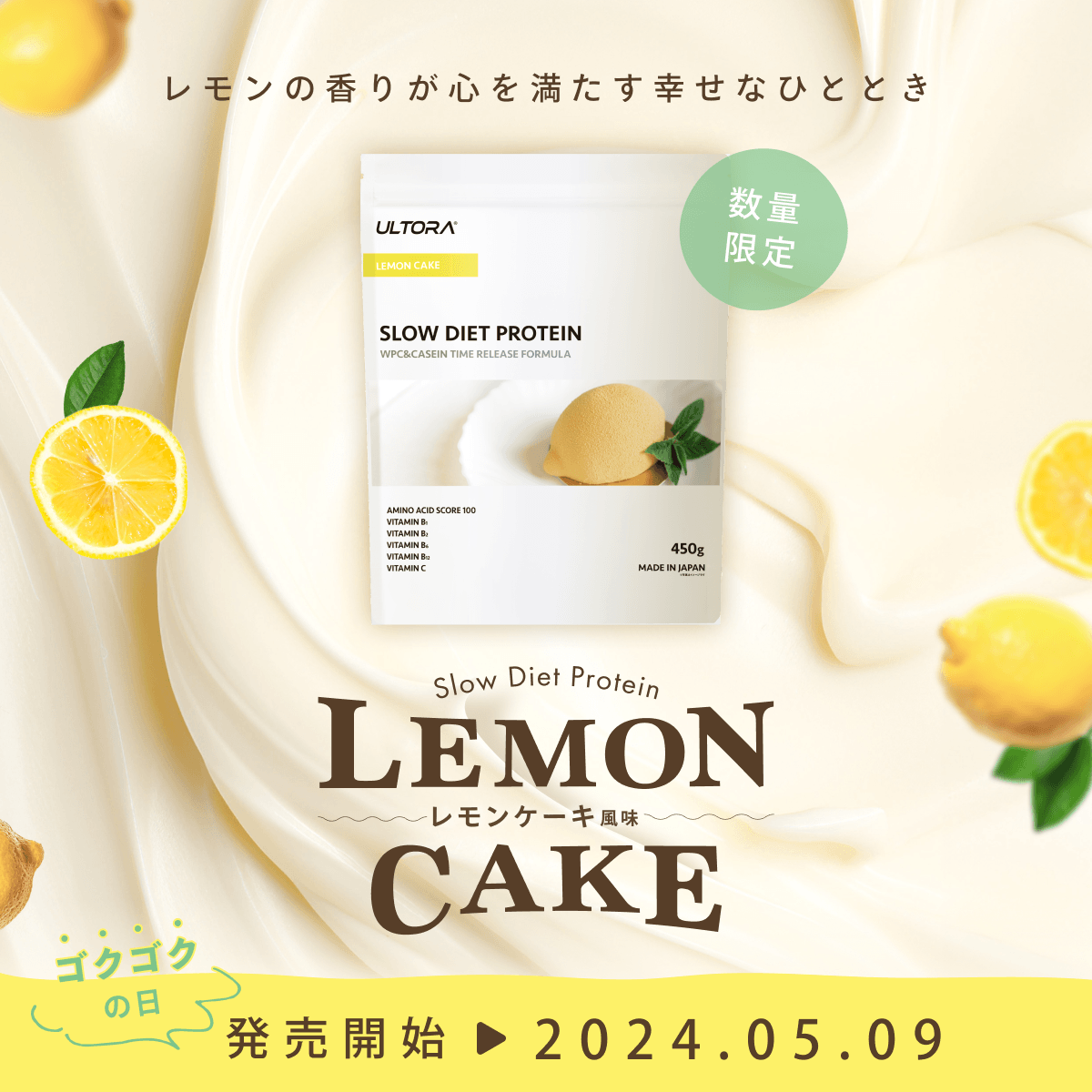 初夏にぴったりなレモン香る爽やかな新フレーバー! ULTORA「SLOW DIET PROTEIN レモンケーキ風味」が発売!