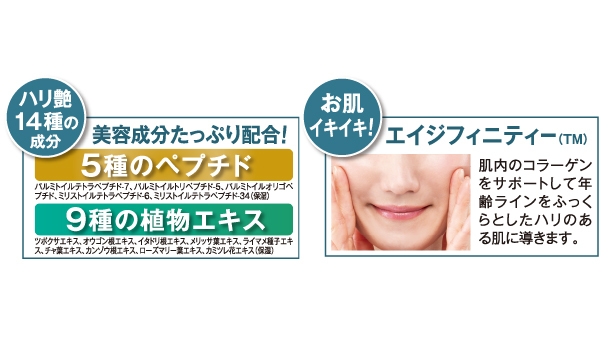 エイジングケア成分エイジフィニティーが肌のたるみをサポートします。