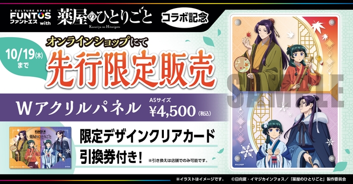 株式会社ソユーは、コラボレーションスペース事業「ファントエス」最新弾として、後宮を舞台に「毒見役」の少女が様々な難事件を解決する『薬屋のひとりごと』のTVアニメ放送に合わせ、全国のファントエスおよびオンラインショップにて2023年10月26日(木)~2023年12月19日(火)の期間限定でコラボを開催いたします。